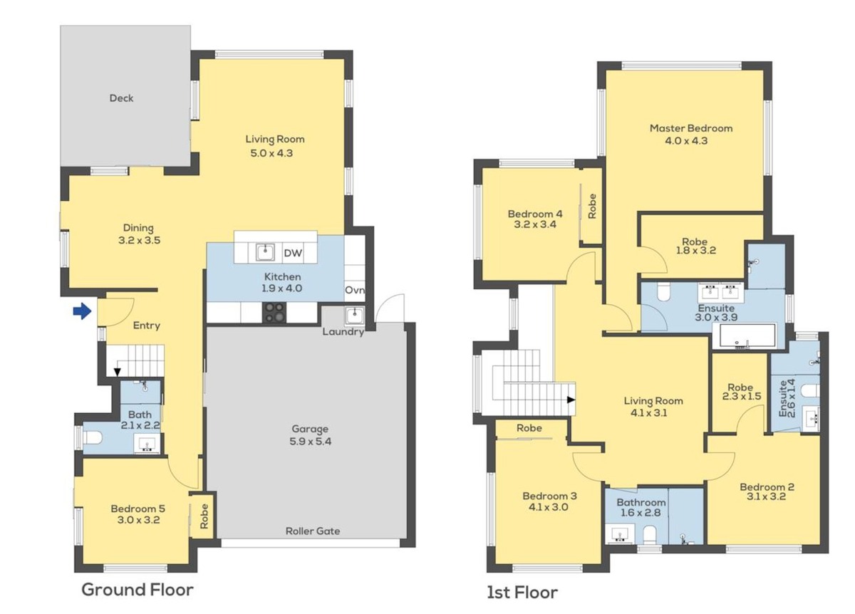 You enter the property through the airy and spacious entrance hall, leading to the open-plan living area with a designer kitchen. The area flows seamlessly out to the sun-drenched deck and low-maintenance lawns. Further downstairs is the double garage, a bathroom, and a double bedroom (perfect for guests). Upstairs, you enter the second living area providing access to the other four bedrooms, including the master suite with a large walk-in wardrobe and an ensuite, which is complete with a walk-in shower and bath. A second ensuite bedroom, and walk-in wardrobe, and 2 further double bedrooms complete the upper level.