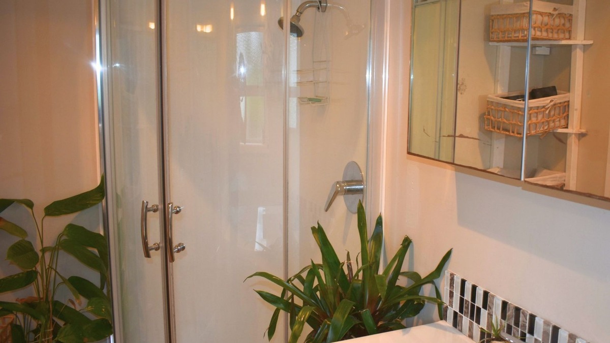 A family bathroom with shower and bath, plus a separate toilet.